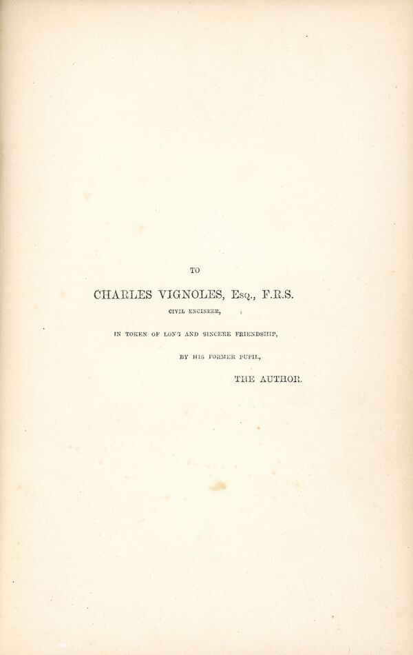 Sheilds had worked in England as an engineer under Charles Vignoles, whose name is probably most quickly associated in the minds of engineers with the development of flat-bottomed rail which is now standard, but in 1840 was an innovation. Sheilds’ relationship with Vignoles was evidently significant, as his book is dedicated to his teacher, mentor and employer.