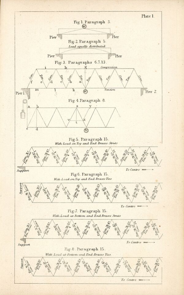 Back in England, Sheilds was employed by Vignoles again and worked on several signal projects, perhaps the most relevant to his book being the Crystal Palace. His solutions to the problems he faced designing iron beams and framed girders which a modern engineer might be tempted to call trusses are the core of his text.