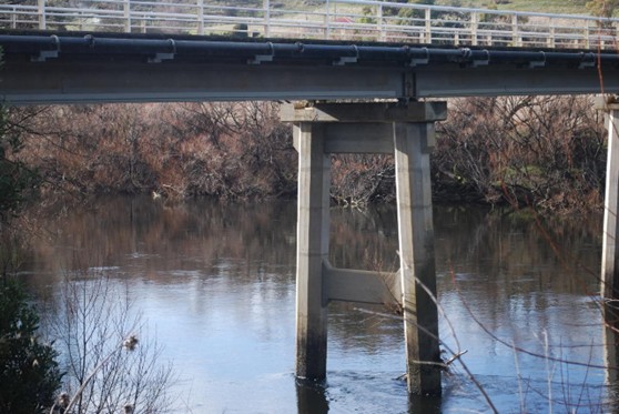 The bridge is supported by concrete piers and abutments. The eastern abutment is founded on a sandstone abutment constructed in 1892 for a previous bridge.