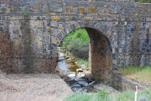 Kerry Lodge Bridge is an historic masonry arch bridge constructed in 1834-5 and still in service. For most of its 65.5m length, it is a solid causeway between unusually coloured dolerite walls. In the centre of the causeway, there is a single segmental stone arch of 6.1 m span and 8m height over Jinglers Creek.