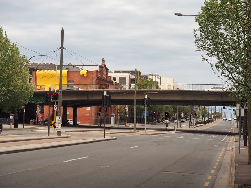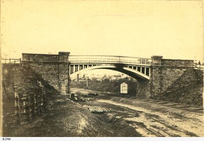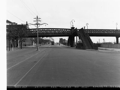 The original Victoria Bridge was built to align with Morphett Street. However, with the rail lines between the bridge and Morphett Street the bridge users needed to cross the railway tracks. A level crossing was provided in 1860. However, the public were unhappy, and the Overway Bridge was constructed in 1868. It was demolished twelve years later and the level crossing reinstated.